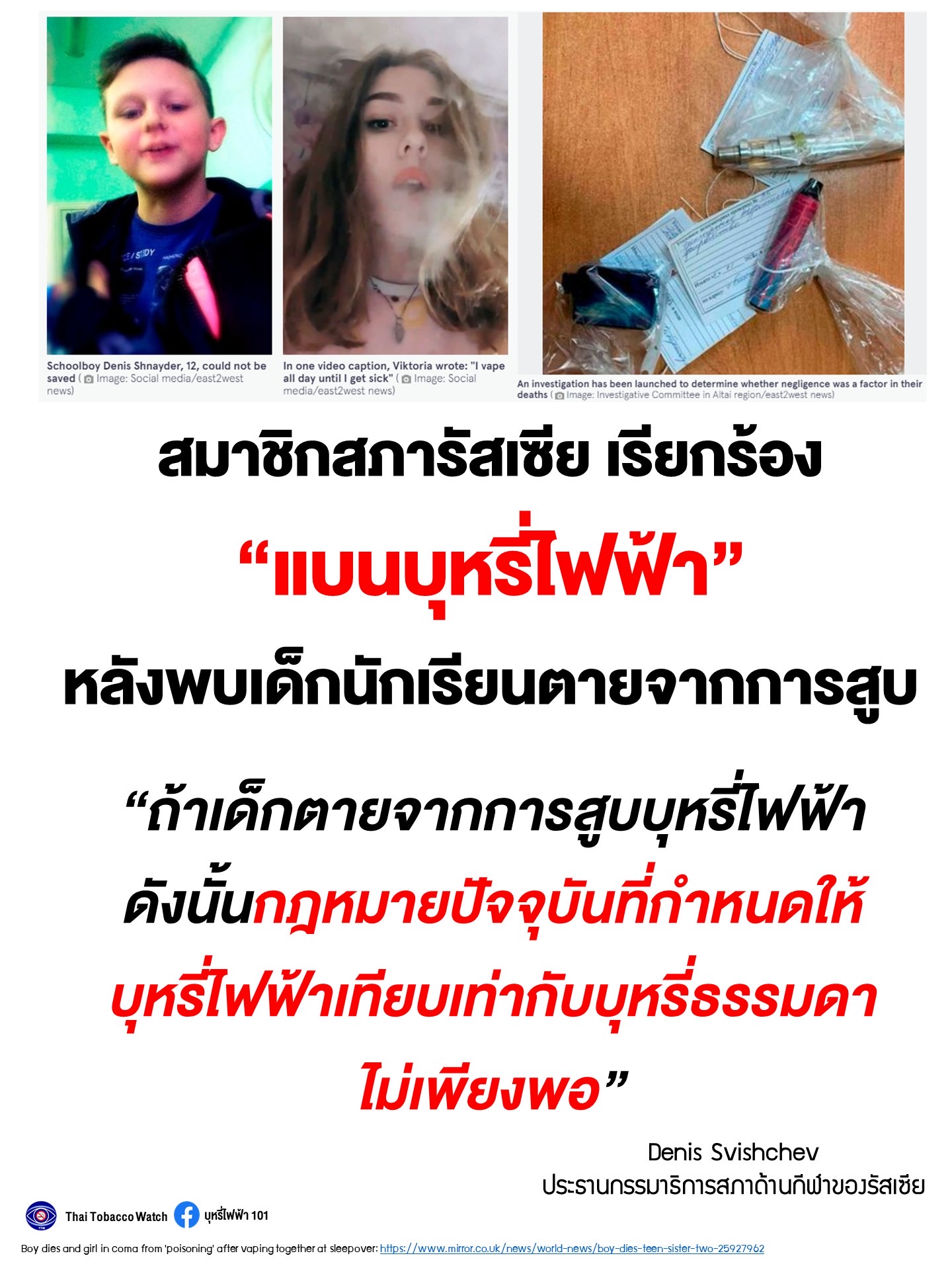 2565/01/21 สมาชิกสภารัสเซีย เรียกร้อง แบนบุหรี่ไฟฟ้า