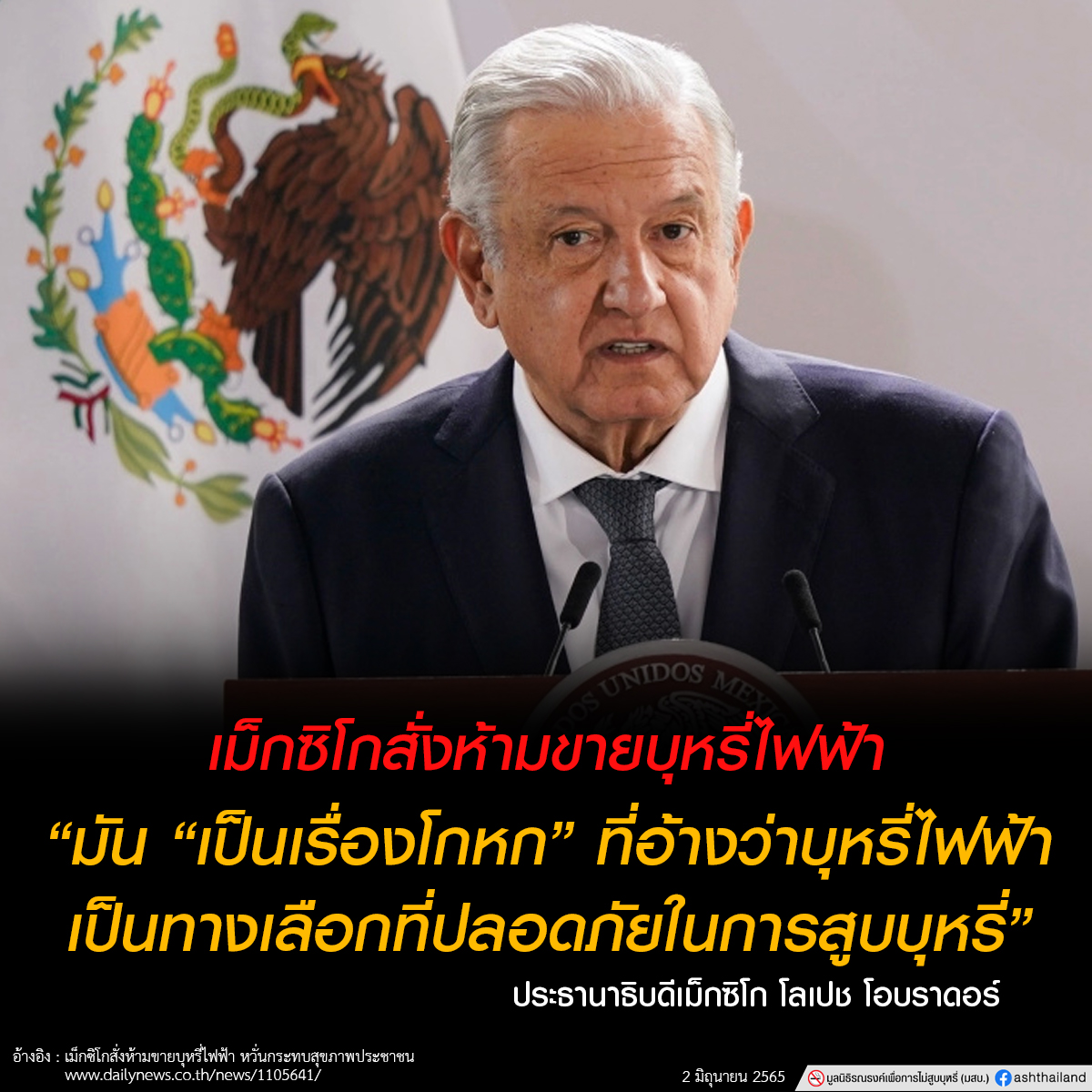 2565/06/02 เม็กซิโกสั่งห้ามขายบุหรี่ไฟฟ้า
