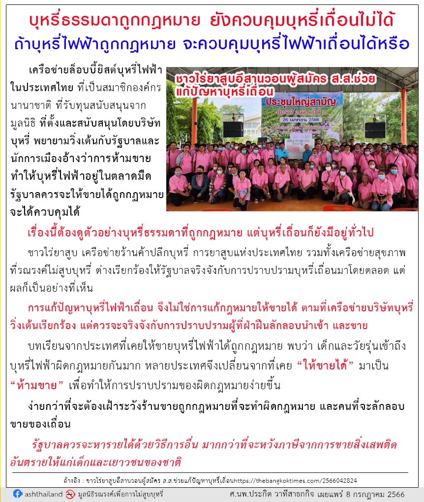 2565/01/30 เขาวิ่งเต้นให้ยกเลิก การห้ามขายบุหรี่ไฟฟ้า แสดงว่า การห้ามขาย ดีต่อส่วนรวม
