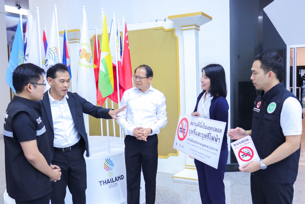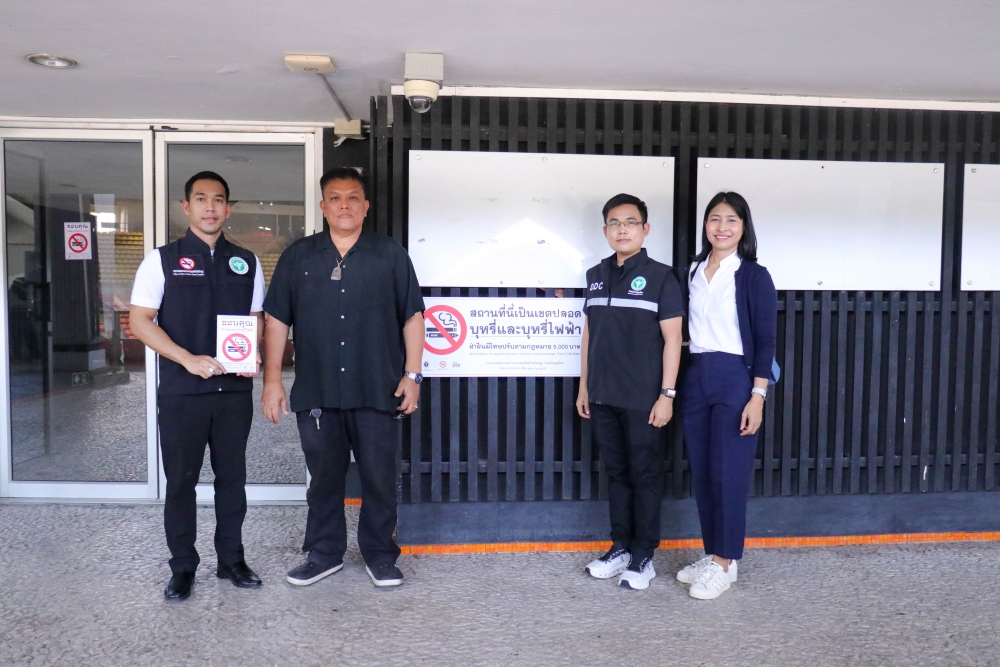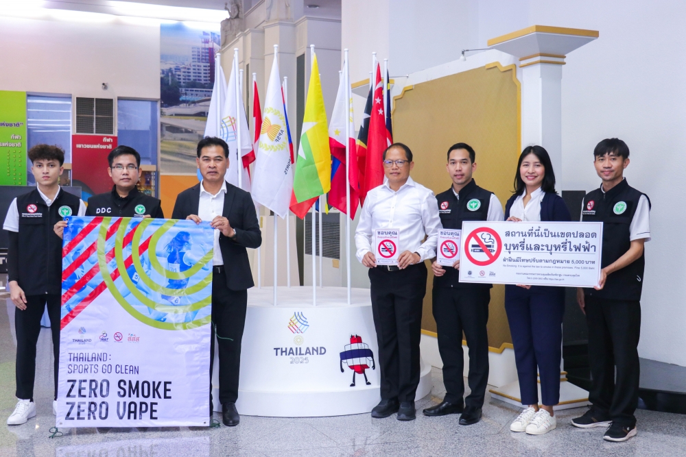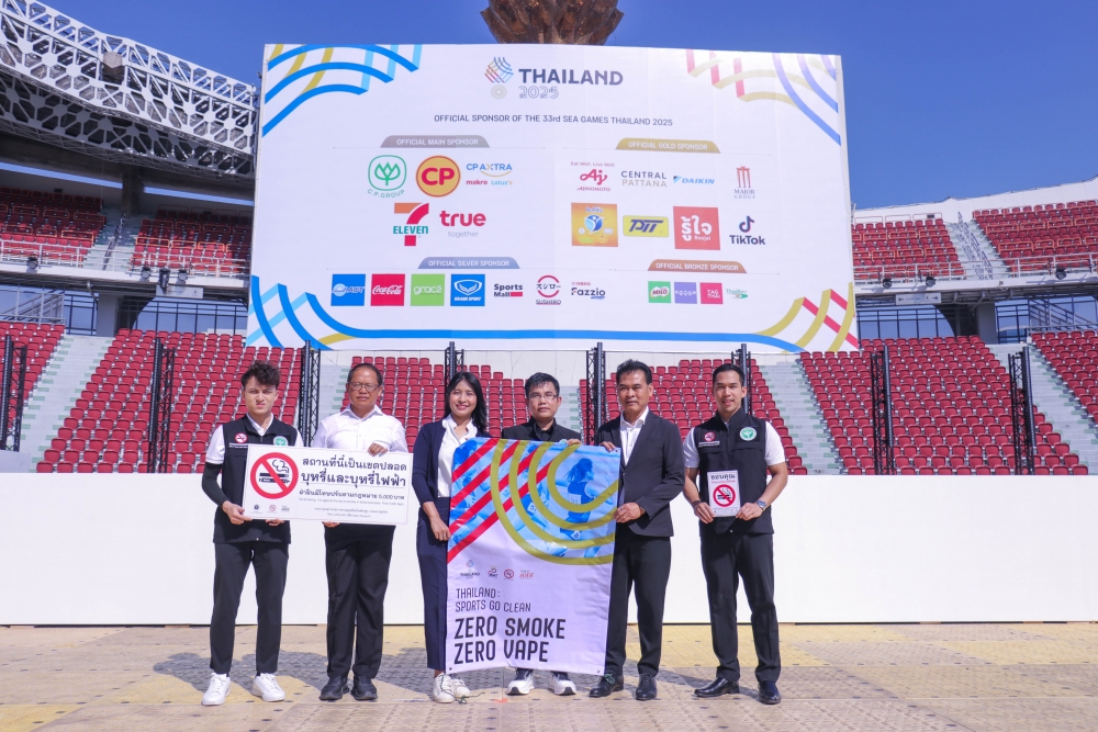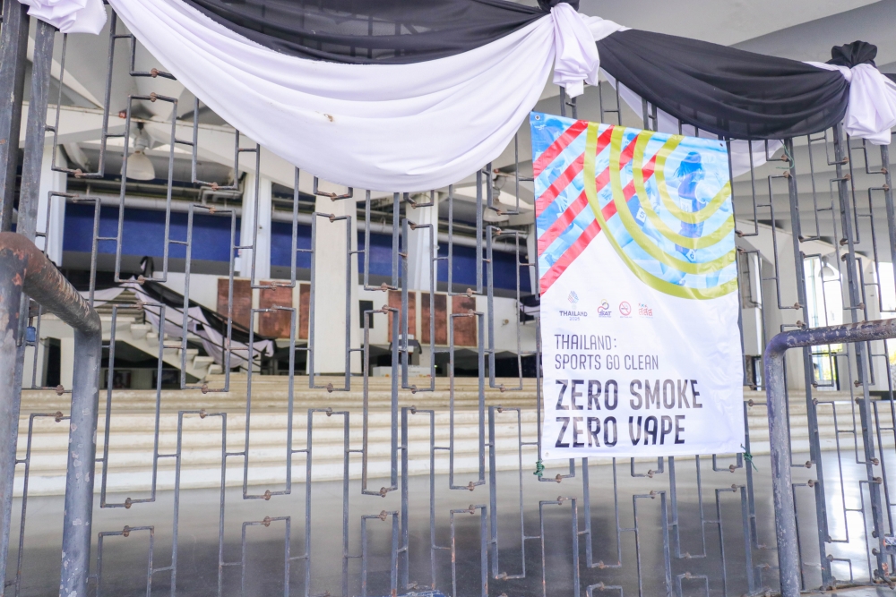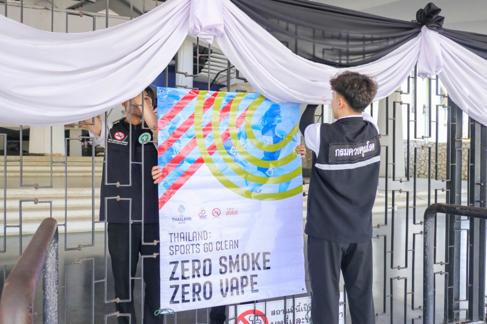 Today, the Action on Smoking and Health Foundation, in collaboration with the Tobacco Product Control Committee Office, Department of Disease Control, Ministry of Public Health—led by Mr. Jirawat Yoosabai, Deputy Director of the Tobacco Product Control Committee Office, and Ms. Wanlapa Kaewsri, Program Executive of the Action on Smoking and Health Foundation—inspected the sites and installed "No Smoking and E-Cigarette" signs. This declares Rajamangala National Stadium and all SEA Games competition areas as 100% smoke-free zones.
