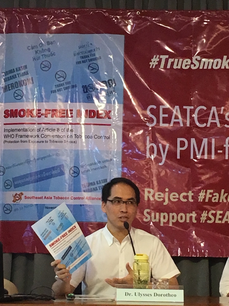 “Conveniently, these actions of FSFW address a PMI concern that was identified in a 2014 PMI Corporate Affairs presentation made public by a Reuters investigative report in 2017: “We’re still building ASEAN-wide counterweights to SEATCA, the major ATO [anti-tobacco organization] in Asia.”[4] With this copycat Smoke-Free Index, PMI is therefore able to hit two birds with one stone,” Dorotheo added.