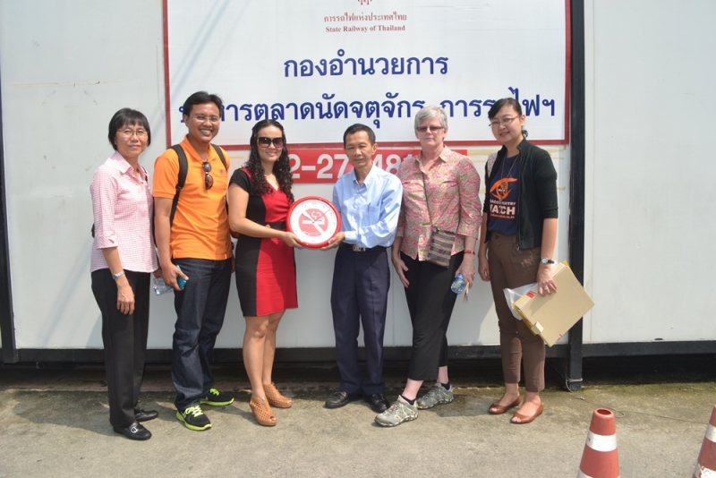 Rizal Majid, representative from Health Promotion Malaysia and Barbara Mouy, from Health Promotion Australia, together with Tan Yen Lian and Dr. Lina Foong Kin from the Southeast Asia Tobacco Control Alliance (SEATCA) were impressed by Thailand’s efforts in implementing the 100% smoke-free regulation in the very large area of Jatujak Market. The group was keen to learn from Thailand’s experiences in hopes of applying similar methods in their own countries. During the period of this study visit, the group only saw one smoker, which indicated the effectiveness of the smoke-free policy being implemented in the market. The Malaysian representative expressed an interest in applying Thailand’s smoke-free market model to tourist spots in Malaysia, such as the walking streets in Malacca. During the trip, participants had the opportunity to meet with the market management team who has been working diligently to keep the market smoke-free.