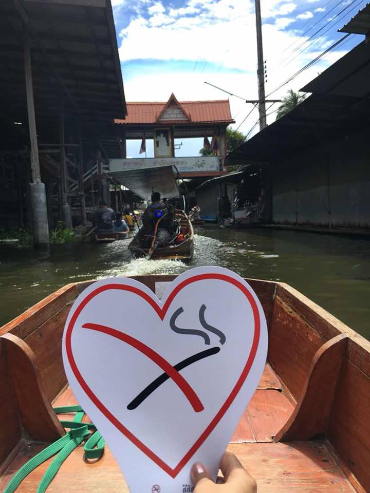 มูลนิธิเพื่อสังคมอาเซียนปลอดบุหรี่ (SEATCA) ร่วมกับมูลนิธิรณรงค์เพื่อการไม่สูบบุหรี่ พาคณะสื่อมวลชนทั้งสื่อโทรทัศน์ หนังสือพิมพ์และนิตยสาร จากประเทศเวียดนาม และพม่า จำนวน 22 คน ลงพื้นที่ศึกษาดูงานตลาดน้ำดำเนินสะดวกปลอดบุหรี่ โดยมีการแลกเปลี่ยนเรียนรู้ บทเรียนการดำเนินงานควบคุมยาสูบในพื้นที่อำเภอดำเนินสะดวก มีนายสุพัฒน์ วัฒนไชย อุปนายกสมาคมผู้ประกอบวิชาชีพวิทยุกระจายเสียงราชบุรี และ นางสาวกนกพรรณ รัตนวิเวก ผู้รับผิดชอบโครงการ เล่าประสบการณ์การทำงานกว่าจะมีการประกาศนโยบายให้ตลาดน้ำดำเนินสะดวกเป็นเขตปลอดบุหรี่ แต่ในปัจจุบันยังเห็นการสูบบุหรี่ในพื้นที่อยู่ จึงต้องติดตามให้มีการบังคับใช้กฎหมายอย่างเข้มงวดเพื่อให้ตลาดน้ำดำเนินสะดวกเป็นเขตปลอดบุหรี่เพื่อประโยชน์ของนักท่องเที่ยวและผู้ประกอบการ