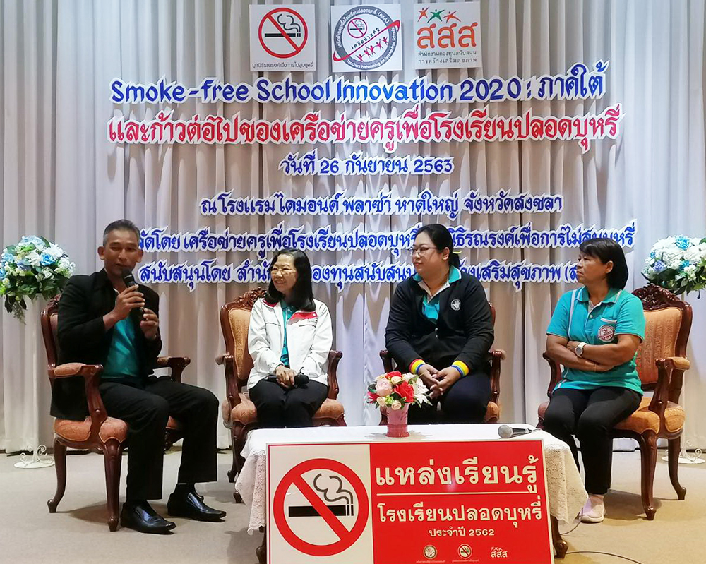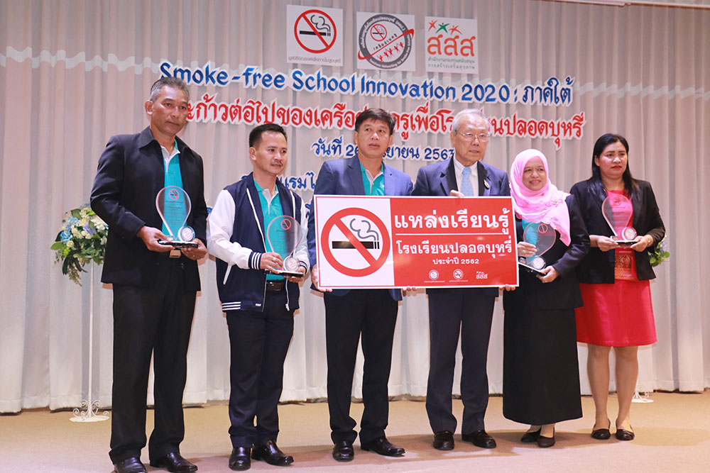 ทั้งนี้ในภาคใต้มีโรงเรียนที่พัฒนานวัตกรรมทั้งหมด 11 แห่ง โดยมี 5 แห่งที่ได้รับโล่นวัตกรรมโรงเรียนปลอดบุหรี่ดีเด่น เช่น โรงเรียนบ้านคลองนามิตรภาพที่ 201 จ.สุราษฎร์ธานี นวัตกรรมชุดการเรียนรู้ เรื่อง No Smoking สำหรับนักเรียนชั้นมัธยมศึกษาปีที่ 1 จำนวน 6 ชุด ประกอบไปด้วย ชุดที่ 1 ค้นหาความจริง ชุดที่ 2 บิงโกหรรษา ชุดที่ 3 ปริศนาคำทาย ชุดที่ 4 ความหมายจิ๊กซอว์ ชุดที่ 5 ลุยต่อเกมสารพิษ ชุดที่ 6 พิชิตขุมสมบัติ ผลการทดสอบด้านความรู้และเจตคติที่เกิดขึ้นพบว่า นักเรียนมีคะแนนหลังใช้สูงกว่าก่อนใช้ชุดการเรียนรู้ ส่งผลให้นักเรียนตระหนักในเรื่องพิษภัยของบุหรี่ โรงเรียนปะเหลียนผดุงศิษย์ จ.ตรัง นวัตกรรมหนังตะลุงมีชีวิต พิชิตควันบุหรี่ เพื่อรณรงค์โทษของบุหรี่ โดยการใช้วัฒนธรรมการละเล่นท้องถิ่นประจำภาคใต้ แปลงเนื้อหาของเนื้อร้องเป็นเรื่องโทษพิษภัย โรคร้ายของบุหรี่ บุหรี่ไฟฟ้า ฯลฯ ทำให้การสื่อสารเรื่องบุหรี่เข้าถึงกลุ่มเป้าหมายได้ง่าย โรงเรียนคลองพนสฤษดิ์พิทยา จ.กระบี่ นวัตกรรมเกมมหาสนุกสร้างสรรค์ไอคิว นวดฝ่าเท้ากดจุดสะท้อนเลิกบุหรี่ สมุนไพรช่วยเลิก ใช้สอดแทรกในการจัดการเรียนการสอนเ ทำให้เด็กเรียนรู้เรื่องบุหรี่ด้วยความสนุก และไม่น่าเบื่ออีกต่อไป