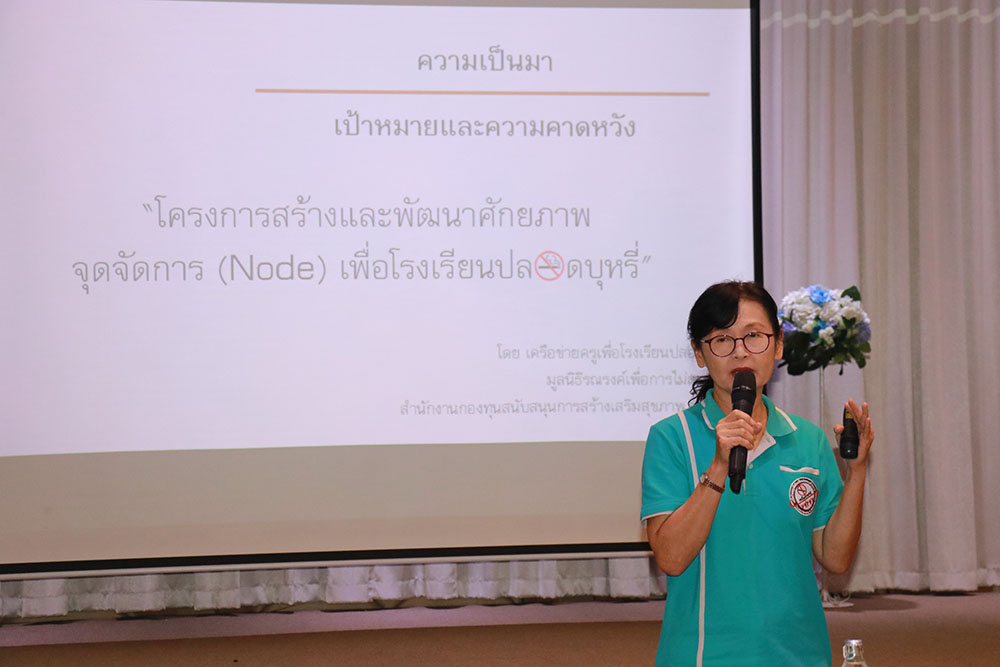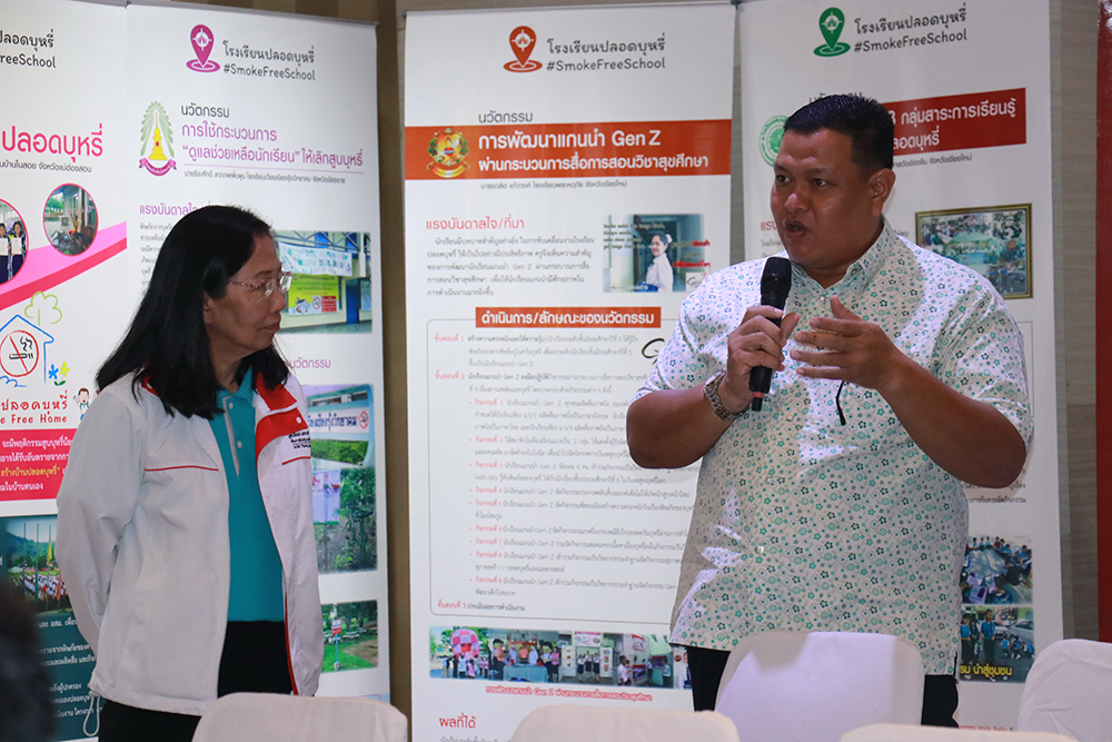 ด้านนางสุวิมล จันทร์เปรมปรุง คณะกรรมการบริหารเครือข่ายครูเพื่อโรงเรียนปลอดบุหรี่ กล่าวว่า เครือข่ายครูเพื่อโรงเรียนปลอดบุหรี่ ได้ขับเคลื่อนโครงการพัฒนานวัตกรรมโรงเรียนปลอดบุหรี่ โดยมีจุดมุ่งหมายในการพัฒนาและยกระดับนวัตกรรมการดำเนินงานโรงเรียนปลอดบุหรี่อย่างเป็นรูปธรรม กับกลุ่มเป้าหมายเครือข่ายโรงเรียนปลอดบุหรี่ที่เครือข่ายครูเพื่อโรงเรียนปลอดบุหรี่ได้สร้างไว้ โดยเป็นการพัฒนาให้เกิด “นวัตกรรมการดำเนินงานโรงเรียนปลอดบุหรี่” จากการใช้ 7 มาตรการเพื่อโรงเรียนปลอดบุหรี่ ที่มีมิติการดำเนินงานแต่ละมาตรการในเชิงลึก วัดผลสำเร็จเป็นรูปธรรมตามหลักวิชาการ