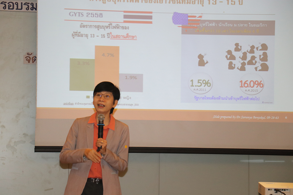 โดยมีวิทยากรมาเพิ่มเติมความรู้ในเรื่องของ ทำไม! ต้องควบคุมการบริโภคยาสูบ และความเป็นนักAdvocate โดยนางสาวบังอร ฤทธิภักดี ผู้อำนวยการศูนย์ธรรมมภิบาลในการควบคุมยาสูบ วิทยาลัยโลกคดีศึกษา มหาวิทยาลัยธรรมศาสตร์ (GGTC) สถานการณ์ควบคุมการบริโภคยาสูบของประเทศไทย โดย ผศ.ดร.ศรัณญา เบญจกุล คณะสาธารณสุขศาสตร์ มหาวิทยาลัยมหิดล และการทบทวนกฎหมายเกี่ยวกับ พ.ร.บ.ควบคุมผลิตภัณฑ์ยาสูบ พ.ศ.2560 โดยนายอดิศักดิ์ พุ่มทอง กองงานคณะกรรมการควบคุมผลิตภัณฑ์ยาสูบ กรมควบคุมโรค กระทรวงสาธารณสุข ผศ.ดร.ลักขณา เติมศิริกุลชัย กับ 9 คำถามเครื่องมือในการผลักดันนโยบายสำหรับการเป็นนัก Advocate