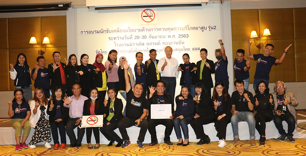 มูลนิธิรณรงค์เพื่อการไม่สูบบุหรี่ ได้จัดการอบรมผู้นำสื่อนักขับเคลื่อนนโยบายด้านการควบคุมการบริโภคยาสูบ รุ่นที่ 2 ระหว่างวันที่ 28-30 กันยายน 2563 ณ โรงแรมมิราเคิล แกรนด์ คอนเวนชั่น ถนนวิภาวดีรังสิต กรุงเทพฯ โดยการสนับสนุนจากสำนักงานกองทุนสนับสนุนการสร้างเสริมสุขภาพ (สสส.)