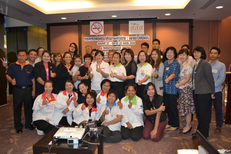 มูลนิธิฯ จัดกิจกรรม "อบรมพัฒนาศักยภาพเครือข่าย : ขยายข่าวให้มีพลัง" ให้กับภาคีเครือข่ายจากสำนักงานสาธารณสุขจังหวัด เครือข่ายครูเพือโรงเรียนปลอดบุหรี่ เครือข่ายวิชาชีพสุขภาพฯ ศูนย์วิจัยและจัดการความรู้เพื่อการควบคุมยาสูบ สำนักควบคุมการบริโภคยาสูบ และสำนักทันตสาธารณสุข จำนวน 35 ท่าน ณ โรงแรมรามาการ์เด้น วันที่ 22-23 เม.ย.56 ที่ผ่านมา