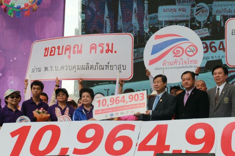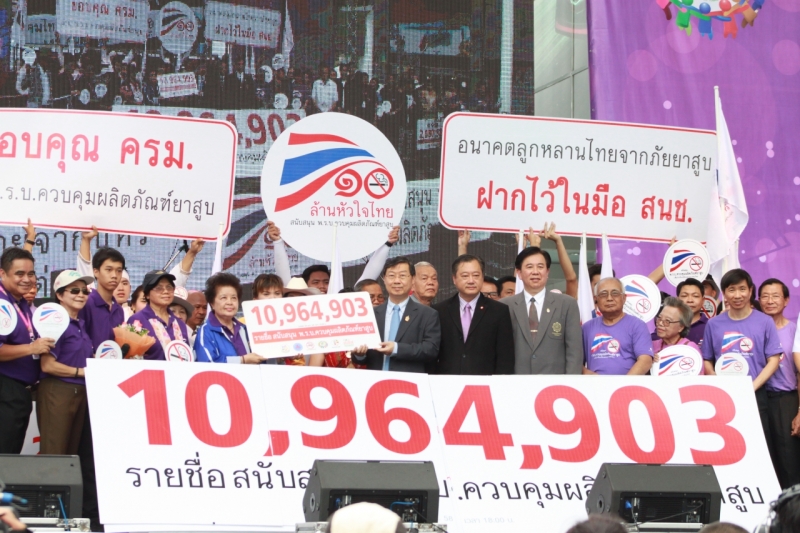 สมาพันธ์เครือข่ายแห่งชาติเพื่อสังคมไทยปลอดบุหรี่ มอบ 10,964,903 รายชื่อให้ สนช.สนับสนุนการออกกฎหมายบุหรี่ฉบับใหม่