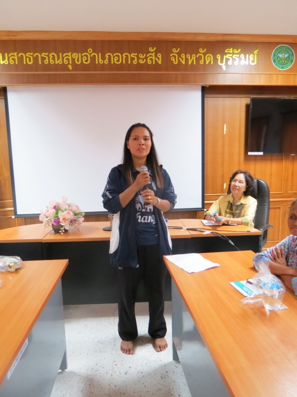 วันที่ 6 มีนาคม 2559 ณ ห้องประชุมสำนักงานสาธารณสุขอำเภอกระสัง จ.บุรีรัมย์ มูลนิธิรณรงค์เพื่อการไม่สูบบุหรี่ ในโครงการพัฒนาสมรรถนะและขยายเครือข่าย อสม. เพื่อทำบ้านในชุมชนให้ปลอดบุหรี่ ดำเนินการจัดถอดบทเรียนรายอำเภอครั้งที่ 1 โดยมี ผศ.กรองจิต วาทีสาธกกิจ และนางอารีย์ ชูกลาง เป็นผู้ดำเนินรายการถอดบทเรียนติดตามผลการดำเนินงานช่วยให้คนเลิกบุหรี่ของ อสม. 1 คน ช่วยให้คนเลิกบุหรี่อย่างน้อย 1 คน รอบเช้า เป็นอสม. จาก ต.ลำดวน และ ต.กระสัง จำนวน 56 คน รอบบ่าย เป็น อสม. จาก ต.สูงเนิน และ ต.ห้วยสำราญ จำนวน 63 คน ในครั้งนี้ได้รับเกียรติจากท่านสาธารณสุขอำเภอกระสัง นายบุญเลิศ ยอดสะเทิ้น ร่วมถ่ายรูปหมู่ในครั้งนี้ด้วย