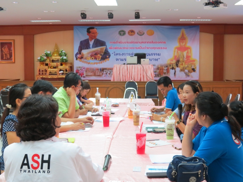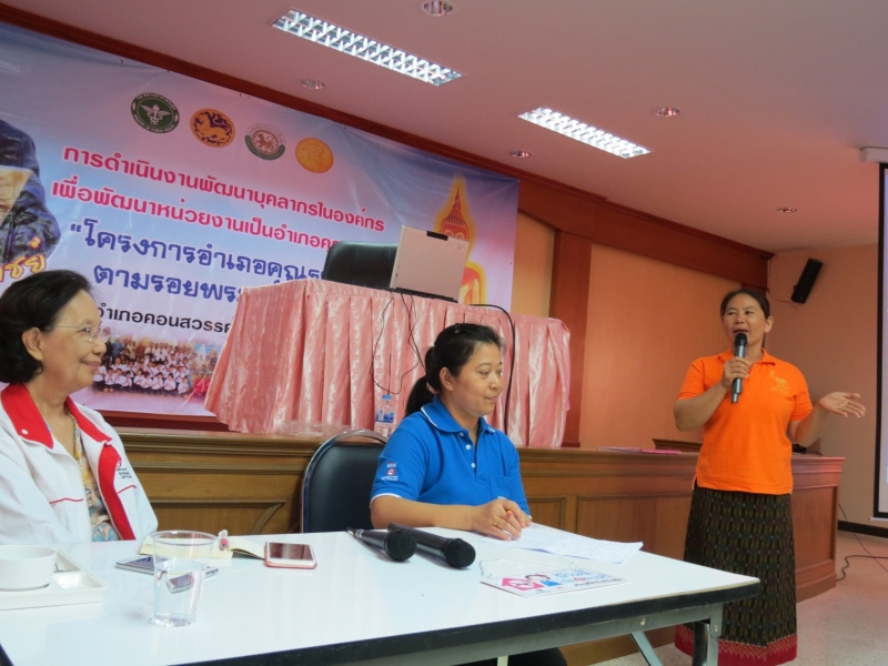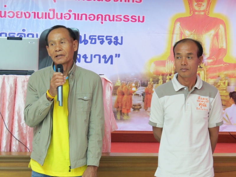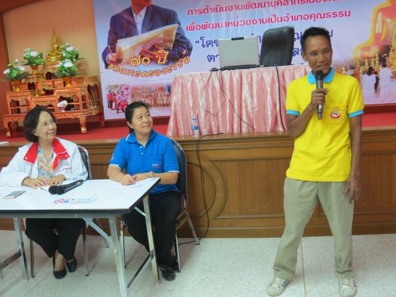 วันที่ 15 มีนาคม 2559 ณ ห้องประชุมโรงพยาบาลคอนสวรรค์ อ.คอนสวรรค์ จ.ชัยภูมิ มูลนิธิรณรงค์เพื่อการไม่สูบบุหรี่ ในโครงการพัฒนาสมรรถนะและขยายเครือข่าย อสม. เพื่อทำบ้านในชุมชนให้ปลอดบุหรี่ ดำเนินการจัดถอดบทเรียนรายอำเภอครั้งที่ 1 โดยมี ผศ.กรองจิต วาทีสาธกกิจ และนางสาวรษา รวิสานนท์ เป็นผู้ดำเนินรายการถอดบทเรียนติดตามผลการดำเนินงานโครงการ ในรอบเช้า เป็นผู้นำชุมชนและ อสม. จำนวน 68 คน ผู้ใหญ่บ้านและ อสม. ต่างแลกเปลี่ยนประสบการณ์ทำบ้านปลอดบุหรี่และชักชวนคนในหมู่บ้านให้เลิกบุหรี่ ในครั้งนี้มี อสม. นายสิงห์ อ้อมนอก อสม. หมู่ 7 บ้านหนองบัวบานเย็น ต.ศรีสำราญ ออกมาเล่าประสบการณ์การช่วยให้คนเลิกบุหรี่ร่วมกับ อสม.ในชุมชน 8 คน ช่วยให้คนเลิกบุหรี่ได้จำนวนรวม 23 คน