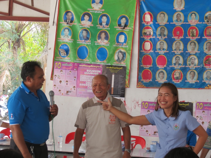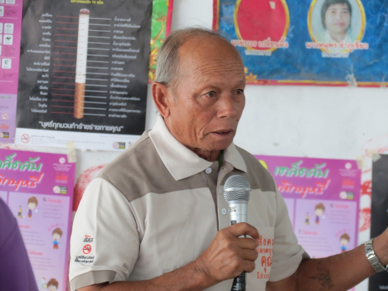 ในวันที่ 18 มีนาคม 2559 อ.ภูเขียว จ.ชัยภูมิ มูลนิธิรณรงค์เพื่อการไม่สูบบุหรี่ ในโครงการพัฒนาสมรรถนะและขยายเครือข่าย อสม. เพื่อทำบ้านในชุมชนให้ปลอดบุหรี่ ดำเนินการลงพื้นที่ติดตามผลการดำเนินงาน และให้กำลังใจในพื้นที่ที่เข้าร่วมโครงการบ้านปลอดบุหรี่ โดยมี ผศ.กรองจิต วาทีสาธกกิจ และนางวราภรณ์ สระประทุม ร่วมติดตามให้กำลังใจ โดยในรอบเช้าเป็นพื้นที่ ม.5 บ้านหนองเบน ต.หนองคอนไทย โดยได้พบกับ นางสาววันทิวา มาลัยคำ นวก.สาธารณสุข รพ.สต.หนองบัวพรม และนายทองสุข พรประทุม ผู้ใหญ่บ้าน อสม. และประชาชน มาร่วมต้อนรับ พร้อมรับฟังการแบ่งปันประสบการณ์ ทั้งนี้ได้เข้าพบบ้านต้นแบบเลิกบุหรี่ได้ คือ นายประสิทธิ์ ใจประนม บุคคลต้นแบบเลิกบุหรี่ได้ โดยสาเหตุของการเลิกมาจากสุขภาพของตนเอง หมอจึงแนะนำให้เลิกบุหรี่ จึงตัดสินใจเลิกด้วยตนเอง โดยมี อสม. และครอบครัวติดตามให้กำลังใจ จึงทำให้เลิกบุหรี่ได้