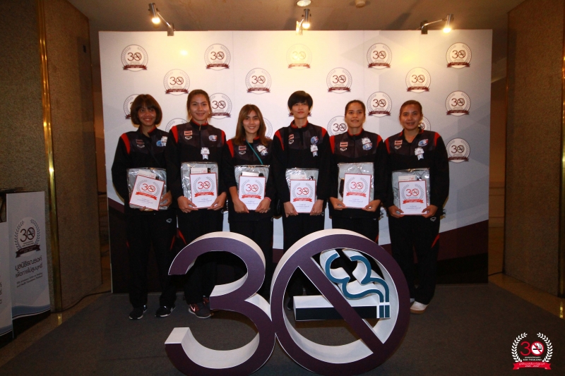 นักกีฬาวอลเลย์บอลหญิง ทีมชาติไทย รับโล่ประกาศเกียรติคุณเนื่องในโอกาสครบรอบ 30 ปี มูลนิธิรณรงค์เพื่อการไม่สูบบุหรี่