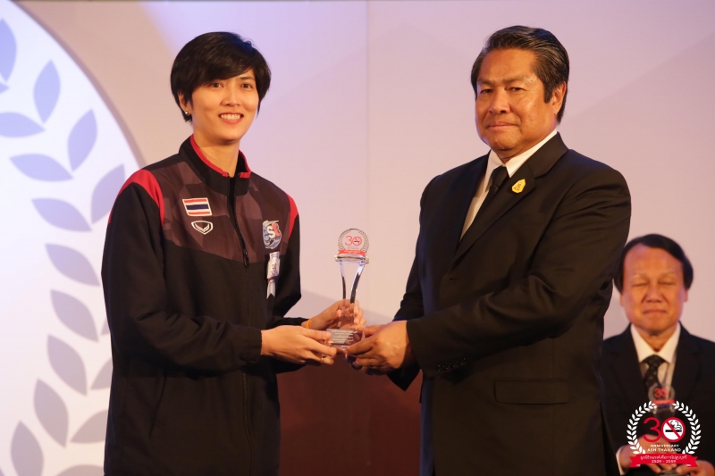 ท่านสมพร ใช้บางยาง นายกสมาคมกีฬาวอลเลย์บอลแห่งประเทศไทย นำทีมนักกีฬาวอลเลย์บอลหญิง ทีมชาติไทย รับโล่ประกาศเกียรติคุณ จากท่านพลากร สุวรรณรัฐ องคมนตรี เนื่องในโอกาสครบรอบ 30 ปี มูลนิธิรณรงค์เพื่อการไม่สูบบุหรี่ ซึ่งทางสมาคมและนักกีฬาทุกคนได้ร่วมสนับสนุนสร้างกระแสค่านิยมที่ไม่สูบบุหรี่มาอย่างต่อเนื่อง รวมถึงได้ให้ความสำคัญร่วมขับเคลื่อนสร้างกระแสสนับสนุนนโยบายสำคัญคือ การสร้างกระแสสนับสนุนภาพคำเตือนบนซองบุหรี่ 85% ในปี พ.ศ.2556 และร่วมสร้างกระแสรณรงค์สนับสนุน ร่าง พระราชบัญญัติควบคุมผลิตภัณฑ์ยาสูบฉบับใหม่ เมื่อวันอังคารที่ 1 พฤศจิกายน 2559 ณ ห้องราชเทวี แกรนด์บอลรูม โรงแรมเอเชีย กรุงเทพฯ